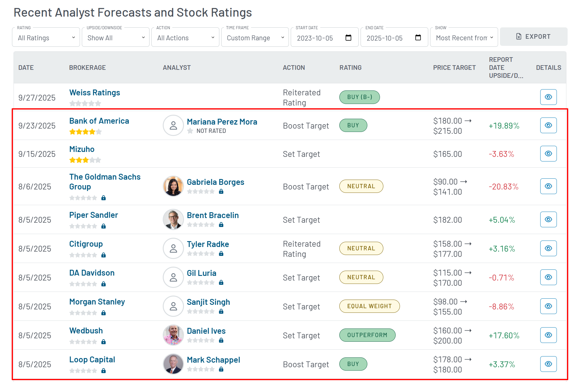 8월 에서 9월에 목표가 상향이 이루어 졌고 지금은 애널의 목표가 보다 아래에 있다.